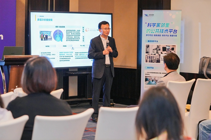 論壇中,北化生科黨總支書(shū)記、總經(jīng)理申海成從專業(yè)運(yùn)營(yíng)空間、專業(yè)運(yùn)營(yíng)團(tuán)隊(duì)和專項(xiàng)產(chǎn)業(yè)基金等多個(gè)方面,深度聚焦以核酸藥物為代表的五大細(xì)分賽道,向與會(huì)者詮釋“國(guó)際生物島”獨(dú)有的“1公里科學(xué)家鄰里”生態(tài),并通過(guò)高標(biāo)準(zhǔn)技術(shù)平臺(tái)、專項(xiàng)基金、技術(shù)審評(píng)、專屬空間、高科技人才和公共服務(wù)六大生態(tài)要素協(xié)同,系統(tǒng)闡釋從“0-1-N”的產(chǎn)業(yè)化路徑。